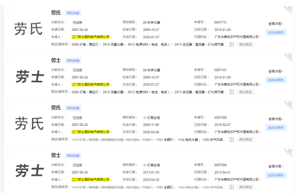 申请人在先初步审定和成功注册的部分商标截图如下: